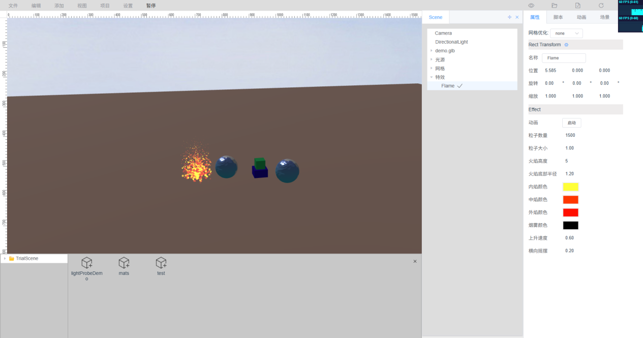 提供时间轴式动画编辑器,支持关键帧动画、路径动画、序列动画。动画模块特性包括: